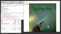 In den unteren Screenshots sieht man die Ausrichtung des Laserpointers passend zum eingestellten Winkel. In beiden Screenshots jeweils links ein Winkel von 48°, in beiden Bildern jeweils rechts ein Winkel von 135°.